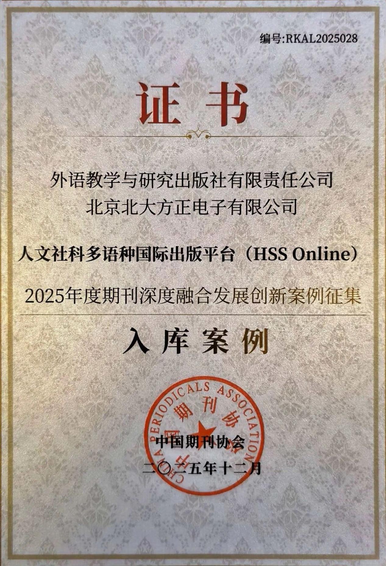 在2025年中国高校期刊研究会发起的“期刊投审稿系统使用情况调查”中,方正鸿云被参与调研期刊评选为推荐度排名第一的服务平台。在七部委联合推动的“中国科技期刊卓越行动计划二期”入选期刊及集群中,8家集群及超过50%的中文期刊选择方正鸿云。方正鸿云承建的人文社科多语种国际出版平台(HSS Online)、吉林省科技期刊集群平台荣获2025年度“王选新闻科学技术奖”,其中,人文社科多语种国际出版平台(HSS Online)还成功入选中国期刊协会组织的“2025年期刊深度融合发展创新案例”。此外,中华医学会、信通传媒、中国电机工程学会、中国社会科学杂志社等出版单位也对方正鸿云的智能化水平给予了高度评价。