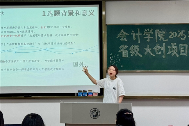 近日,南京审计大学金审学院会计学院孙旖雯、徐宁同学牵头负责的《ESG目标导向下企业智能审计的路径研究——基于多源异构数据融合》项目,成功获批2025年江苏省大学生创新创业训练计划省级立项。在吴凤菊、曹剑两位资深教师指导下,项目团队聚焦数智化时代审计变革与企业可持续发展需求,以技术创新破解ESG审计实践难题,彰显青年学子专业担当。